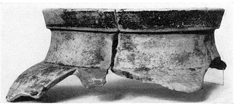 | Description: | Rim and neck, with part of shoulder, preserved. Short, slightly concave neck and thickened rectangular lip. Soft buff clay; dull somewhat peeled black glaze on rim, and for band on shoulder. | |