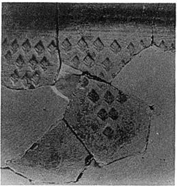 | Description: | Part of rim and wall restored in plaster. Deep pear-shaped bowl on ring foot; flaring rim slightly projecting and flat on top; twisted basket handle. Horizontal grooves below the rim and pendent from them, triangles of stamped diamond-shaped leaves. Micaceous pink clay; badly peeled red glaze. | |