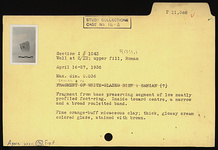 Description:   Fragment from base preserving segment of low neatly profiled foot ring. Inside toward center, a narrow and a broad rouletted band.
