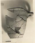 | Description: | The base and about one-quarter of the wall with part of the rim and one handle, preserved. The shape is that of a semi-glazed krater but deeper, and with broad low ring foot. Rolled horizontal handle just below out-curving rim. Very coarse pink to pale buff clay; light slip. Remains of dull red wash inside and on rim. | |