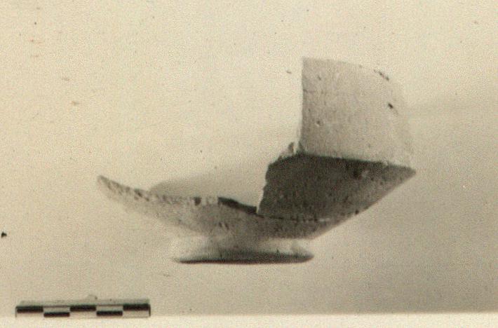 | Description: | Most of the floor and part of the wall and rim preserved. Restored in plaster. Ring foot, sloping floor, high straight rim canted slightly in. Coarse buff clay; dull red wash inside and over upper part of outside. | |
