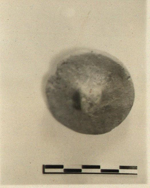 | Description: | Practically intact. Roughly made with knob at center of top; underside convex. Buff clay, soapy. Unglazed. | |