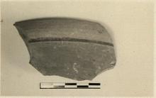 Description:   Part of plain rounded rim preserved; otherwise broken.