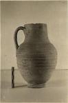 | Description: | Part of mouth missing; otherwise intact. The shape much as P 11576 (Φ 513), but the mouth slightly flaring. Ribbing on body. Buff clay. Thin dull light brown glaze, except toward foot. | |