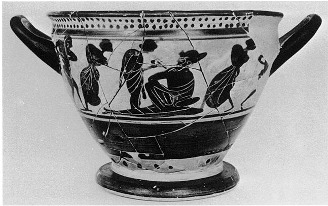 | Description: | Broken on all sides. Bearded head left on outside of pot (curve). Inside glazed; wheelmarks indicate head was flung back.. Joins P 1140 (and subsequently mended with it). | |
