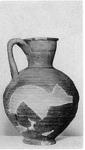 | Description: | Fragments of body missing; restored in plaster. Ring foot; plump round body; neck larger above than below, and slightly bulging; flat projecting lip; band handle with shallow groove, from neck, rising above lip, to shoulder. Grooves at top of shoulder and around neck; body ribbed. Clay pinkish-buff. Slip yellowish-buff. | |