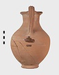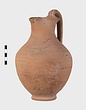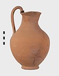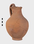 Description:   One side of mouth missing; otherwise intact. Ring foot; body and neck form continuous curve; high ridged handle. Groove around body at lower handle attachment.