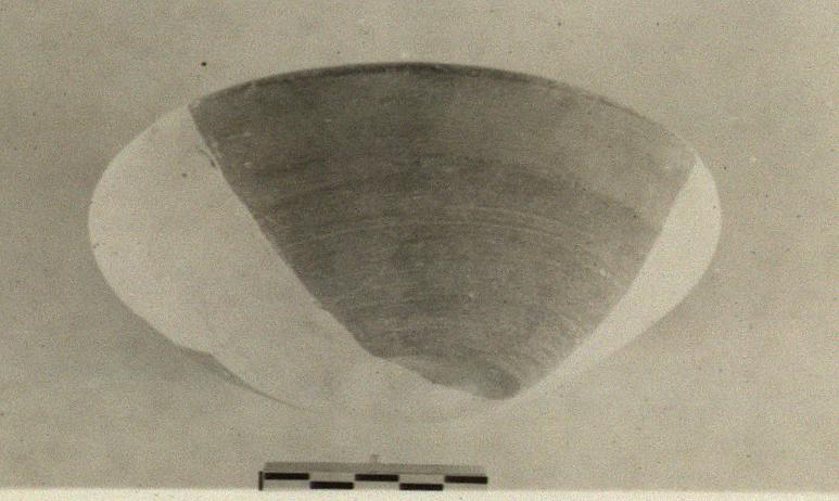 | Description: | About half the rim and part of the wall restored in plaster. Open bowl with slightly rounded sides; flat bottom; plain lip rounded on top. Heavy fabric. Cooking ware clay with lighter slip. | |