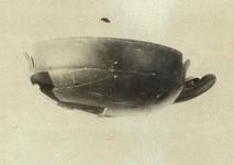 | Description: | Mended from many pieces. Missing base and stem, one handle, considerable portions of the body and fragments of the lip. Lustrous black glaze, worn on the handles, rather thin on the outside. Inside of handle reserved. Lip set so that its lower edge overhangs on the interior. | |