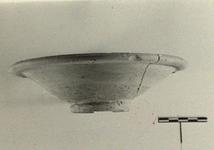 | Description: | Fragment of side missing. Shallow flaring bowl on base ring. Single broad groove on projecting rim. Thick reddish-buff clay. Unglazed. | |