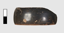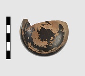 | Description: | Much of one side missing. Broad flat bottom; side wall curves gently inward. Black glaze inside and out; underside reserved. Cf. Agora XII, no. 896. | |