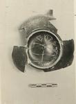 | Description: | Most of lower part of bowl and of foot preserved, and small segment of rim with attachment of one handle. Low broad, sharply profiled foot; wide low bowl with plain almost flat lip. In center, eight interlaced stamped palmettes, closely surrounded by five close-set concentric bands of rouletting. On underside of foot, deeply scratched: <graphic> Fair black glaze; reserved, a groove on bearing surface of foot and a narrow band at top of cavetto on outside of foot ring. | |