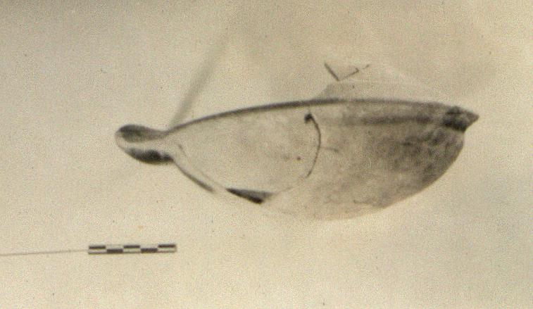 | Description: | Foot, one handle(?), some of lower wall, most of upper wall, and all of mouth missing. Body of a pot with a double convex body, with a wide keel at shoulder; one horizontal handle preserved; start of vertical lip. Keel is pierced (vertically) at handle and at one side. Coarse pinkish-orange clay; top of keel, handle, and upper wall washed with thin reddish paint. A foot which seems to have come from a similar pot, and wall fragments from one or more others are preserved in box. | |