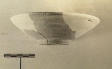 | Description: | Full profile preserved, about two-thirds restored in plaster. Shallow bowl; low base ring; thickened lip slightly undercut on inside. Light gray clay. Unglazed. | |