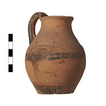 | Description: | Put together from eight pieces; gaps in bottom and sides. Surface worn. Flat bottom unglazed. Brownish glaze much flaked; covers inside of lip. | |
