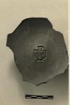 | Description: | A single fragment preserves the entire ring foot and the immediately adjacent parts of the body. At center of floor, a stamped Christian monogram; tail of Rho to right; circles beneath the arms. Purplish red clay and wash. Late Roman C bowl. | |