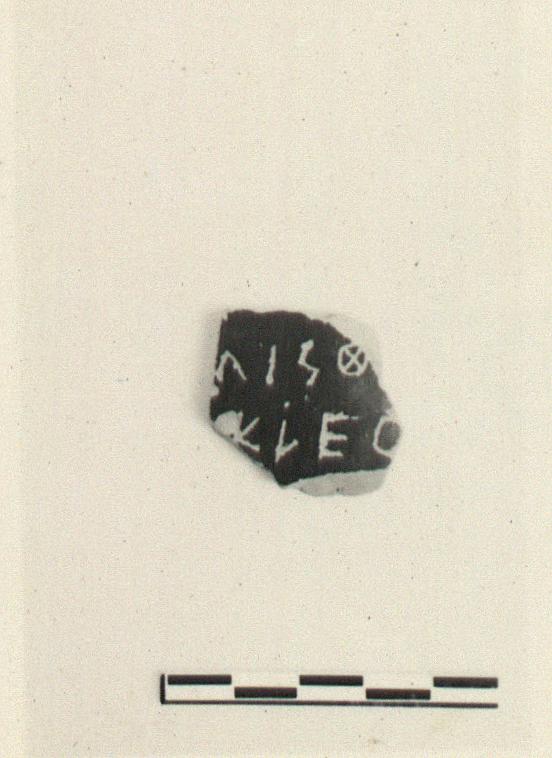| Description: | Wall fragment from a large vase, black glazed inside and out. On outside: <graphic> | |
