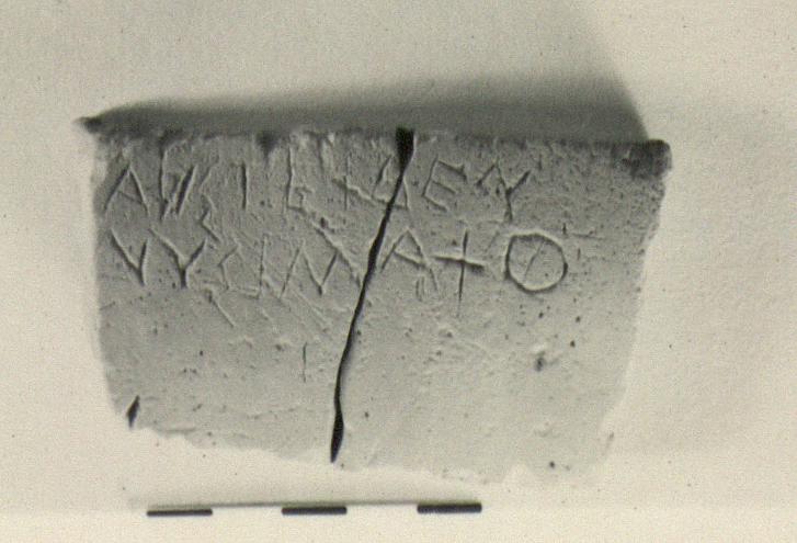 | Description: | Wall fragment from a large plain amphora. Incised on outside: <graphic> | |