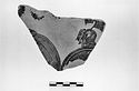 | Description: | Fragment from upper part of body of vase; above, left, start of neck curve and ornament. Decoration in panel: Warrior and attendant; the object ahead of the pair is perhaps a shield seen in perspective. Glaze uneven. | |