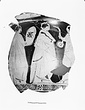| Description: | The base, the rim, both handles and much of the walls missing. One fragment, made up from several, preserves most of the reverse; the other six fragments do not join. A. Combat of griffins and Arimasps; parts of two Arimasps (one mounted, one afoot) preserved and part of one griffin. White with yellow over-drawing for the griffin. B. Three cloaked figures, one holding strigil and sponge, another a huge aryballos ornamented with dotted X. Maeander below. | |