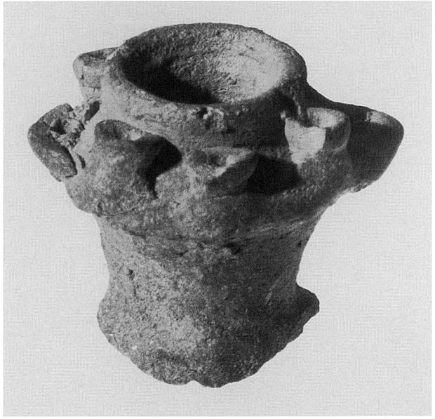 Description:   From handle of a large kernos. A tiny kernos with pierced handles and six still smaller cups attached to the keel.
