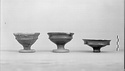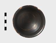 | Description: | Intact except for chips. Low stem; heavy torus base; concave rim, sharply off-set. Outer edge of foot reserved; traces of a glaze band around the outer edge of the resting surface. Traces of stacking on floor. | |