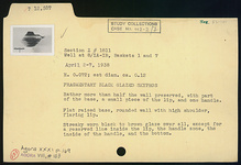 | Description: | Rather more than half the wall preserved, with part of the base, a small piece of the lip, and one handle. Flat raised base, rounded wall with high shoulder, flaring lip. Streaky worn black to brown glaze over all, except for a reserved line inside the lip, the handle zone, the inside of the handle, and the bottom. | |