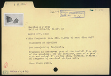 | Description: | Two non-joining fragments. a) Preserves part of the trefoil lip and of the shoulder. On the shoulder, part of a panel, with an animal(?); at the side, vertical stripes. b) Vertical stripes only. Worn black glaze. | |
