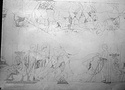 | Description: | Many fragments of a large vase (louterion), mending up to ten; the two larger strengthened with plaster; preserved are parts of the wall, from below the figured zone to the inward curve of the shoulder, with parts, or traces, of three handles. Egg and dot border below scene. Careful, vigourous work; relief contour; free use of brown. Inside firm black, slightly streaky; no glaze on underside of shoulder. ADDENDA A) Theseus and Centaurs, B) Theseus and the Bull. | |