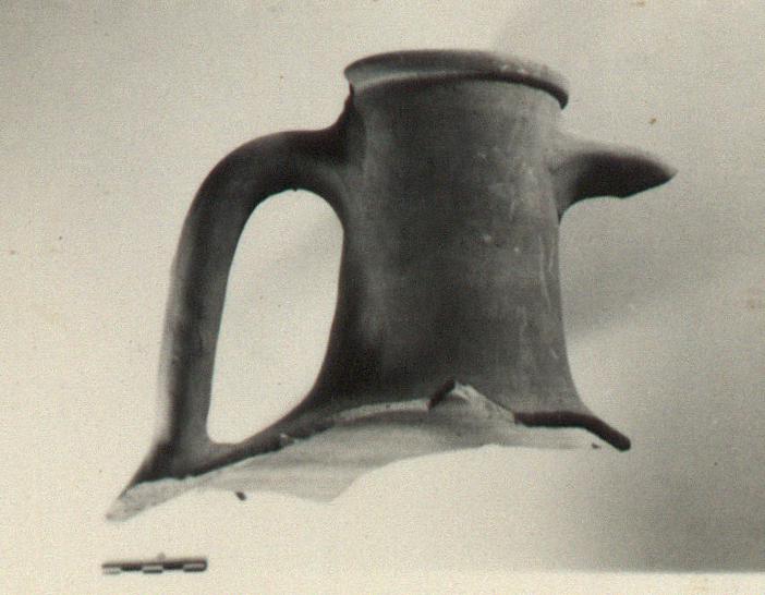 | Description: | Neck of amphora with one complete handle; piece of rim missing. Rolled rim, below which, red band. Dipinto in red high on neck: <graphic> Orange-brown micaceous clay. ADDENDA The handle completed and much of the upper wall added from sherds. The vase has now both handles, most of the shoulder and part of the body below the shoulder (2 August 1976). | |