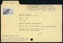 | Description: | Neck of amphora; most of rim and lower half of one handle missing. Flaring rim. Graffito under one handle: <graphic> Gritty yellow clay. | |