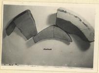 | Description: | Two non-joining fragments from rim and floor. Shallow basin with broad rim flat on top and with a deep overhang; the vertical face ornamented with six horizontal ridges. Around the outer edge of the rim, on top, a broad red band; traces of red and of black on the vertical face in the grooves. Coarse pinkish clay with many large grits; heavier within than without, around the rim and upper wall; toward the center very thin; the surface gritty. | |