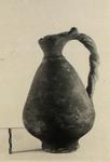 | Description: | Chips of lip and base missing. Deep pear-shaped body on high ring foot with concave face. Narrow neck; flaring bell mouth finished with flat projecting lip. Ridges aroung neck and mouth. Twisted handle, from lip to well down on body. Incised on shoulder, before firing: <graphic> Clay brown, surface dark gray. ADDENDA Import Asia Minor (e.g. Ephesos, hardly Constantinople) [JWH/June 1981]. | |