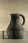 | Description: | Chips of lip missing; otherwise intact. Flat bottom; squat body; neck and body merge; round mouth with thickened lip. Two horizontal and six vertical lines in dull red glaze. Clay brownish. Pale slip. | |