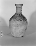 | Description: | Intact, save minor fractures. Small concave bottom; egg-shaped body; tall narrow neck; projecting overhanging lip; no handle. Two ridges on neck and one on upper shoulder. Painted decoration on shoulder: black loops with red centers. Pinkish clay. Buff slip. ADDENDA Nubian or Egyptian [JWH]. | |