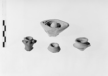 Description:   The stem and foot missing. Simulated handle on one side only. Traces of added white.