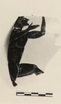 | Description: | Piece from side with runner moving right. Right hand, back of head, most of back line of figure, right leg and lower part of left leg missing. Pinkish-buff clay. Good black glaze. Incision used for interior detail. | |