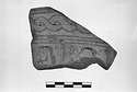 | Description: | Fragment from the rim and upper wall. The preserved part of the wall is almost vertical with a plain, slightly thickened, lip. A band of men to left, separated from one another by schematic trees; circles, zigzags and diamonds in the field. Above them a simple cable pattern between lines. Outline technique; cable pattern filled with white paint(?) and dotted; incision for garments. Black glaze band around upper wall inside. The glaze has almost entirely flaked away. | |