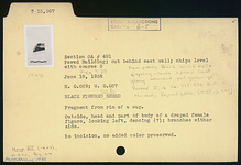 | Description: | Fragment from rim of a cup. Outside, head and part of body of a draped female figure, looking left, dancing(?); branches either side. No incision, no added color preserved. | |