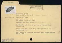 | Description: | Half of one handle and about one-quarter of rim and body preserved. Large open basin with deep broad groove on top of projecting rim. Very flaky reddish-brown clay. Dull brownish glaze on interior. Cf. Agora XXXIII, no. 198. | |