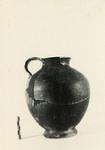 | Description: | About half the rim and neck and small pieces of the wall missing; restored in plaster. Broad egg-shaped body on flaring ring foot; small neck-mouth; round slightly flaring lip. Broad band handle, lip to shoulder, rising slightly above lip. Brownish-black to red glaze, inside and out. | |