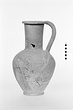 Description:   Part of wall and shoulder, and small piece of rim preserved; restored in plaster. Egg-shaped body on ring foot; tall straight neck; projecting rim, slightly concave on upper face and rounded on outer. Thick rolled handle, lip to top of shoulder.