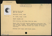| Description: | Knob missing, and chips from one side. Heavy flat lid with rounded slightly projecting rim; low vertical flange. Two narrow scraped bands around base of knob; bearing surface and inside of flange reserved. Pinkish-buff clay; good black glaze. | |