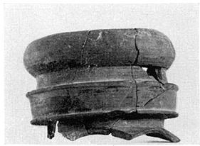 | Description: | Fragment from neck(?) of a large amphora(?). Above what seems to be start of shoulder, "neck" is circled by a heavy, bold, collar-like moulding, this again surmounted by a heavy torus. Upper incurve of torus has been broken off and reworked in antiquity. Gritty orange-pink clay; gray at core, micaceous; thin red wash outside. | |
