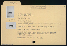 | Description: | From wall of a cup; inside glazed gray to black. Most of a ram, feeding left. Purple for neck; white for horn, belly and scrotum. Hasty incision for some details. Pinkish-buff clay; good glaze fired red outside, greenish inside. | |