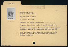 ADDENDA P 13822: Coarse pinkish clay, buff slip(?); poor black glaze.