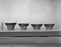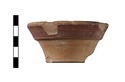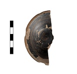 | Description: | About half preserved. Broad shallow cup with flat bottom, flaring walls and heavy collared rim. Pinkish-buff clay; streaky black glaze inside. Outside of rim, purple. | |