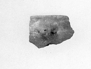| Description: | Fragment from rim and shoulder. Low slightly flaring rim, well marked off from shoulder; horizontally pierced lug at shoulder. Gritty brown clay; red slip inside and out, probably originally burnished. | |