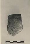 | Description: | Fragment from plain lip and wall of open bowl, the wall decorated with diagonal incisions fading out toward top. Brown clay, largely fired gray; there is certainly brownish red slip inside, probably also outside. | |