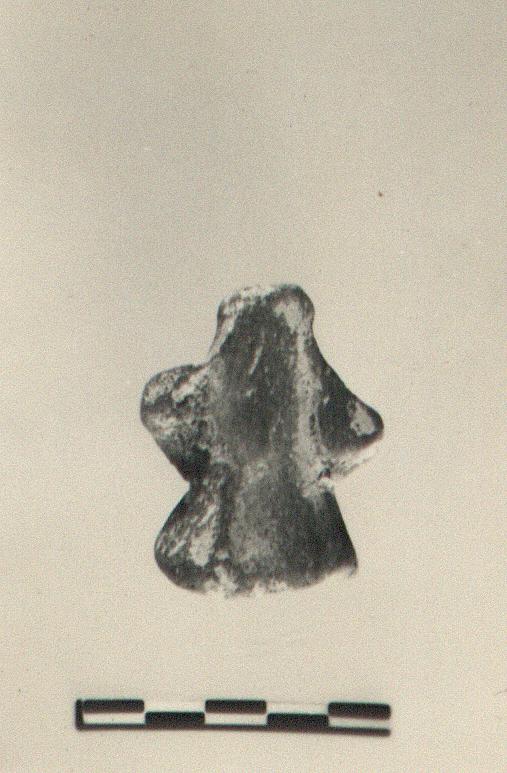 | Description: | A long, nearly cone-shaped object, with a cup-like hollow in broad end, probably broken at small end. A thick coil of clay extends about two-thirds the way around the middle. Gritty clay, dark brown to gray; unglazed. | |